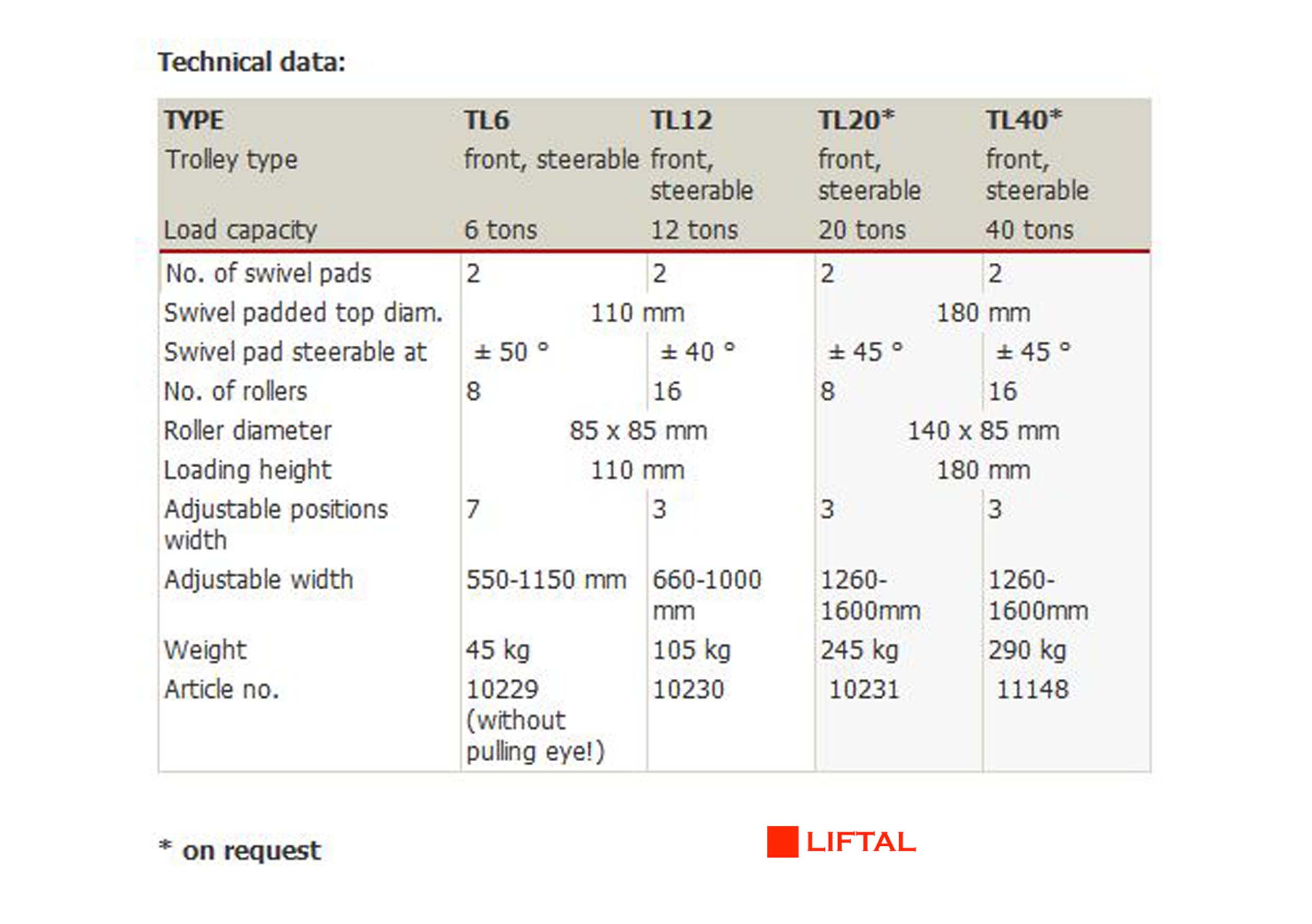 resitance and highest stability for numerous uses. - The models TL6 and TL12 are compatible with the trolleys