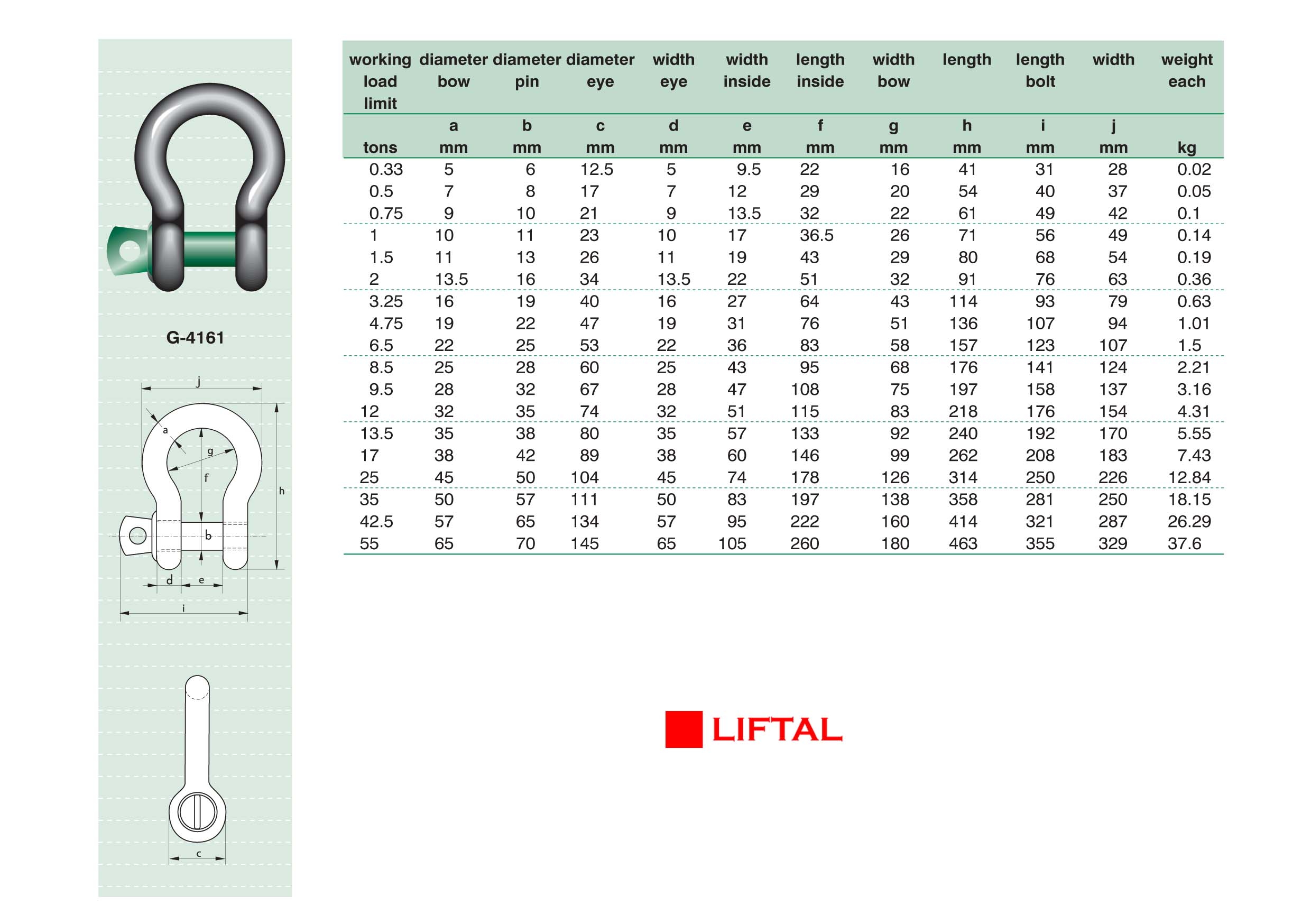 - Material : bow and pin high tensile steel, Grade 6, quenched and tempered