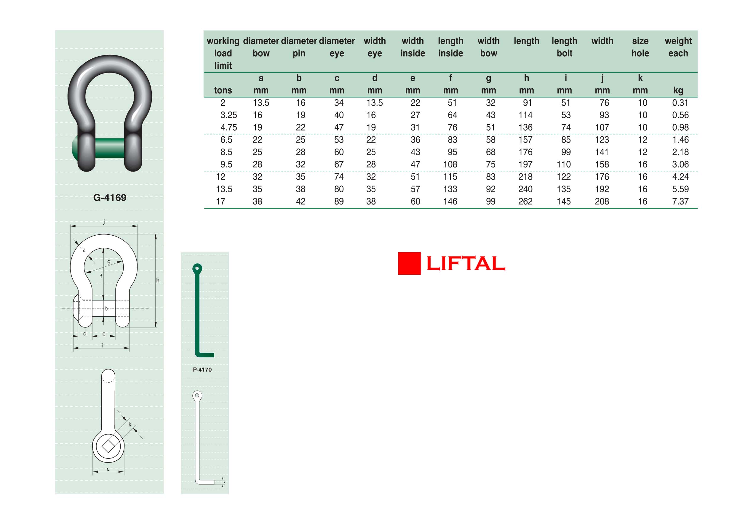 - Material : bow and pin high tensile steel, Grade 6, quenched and tempered