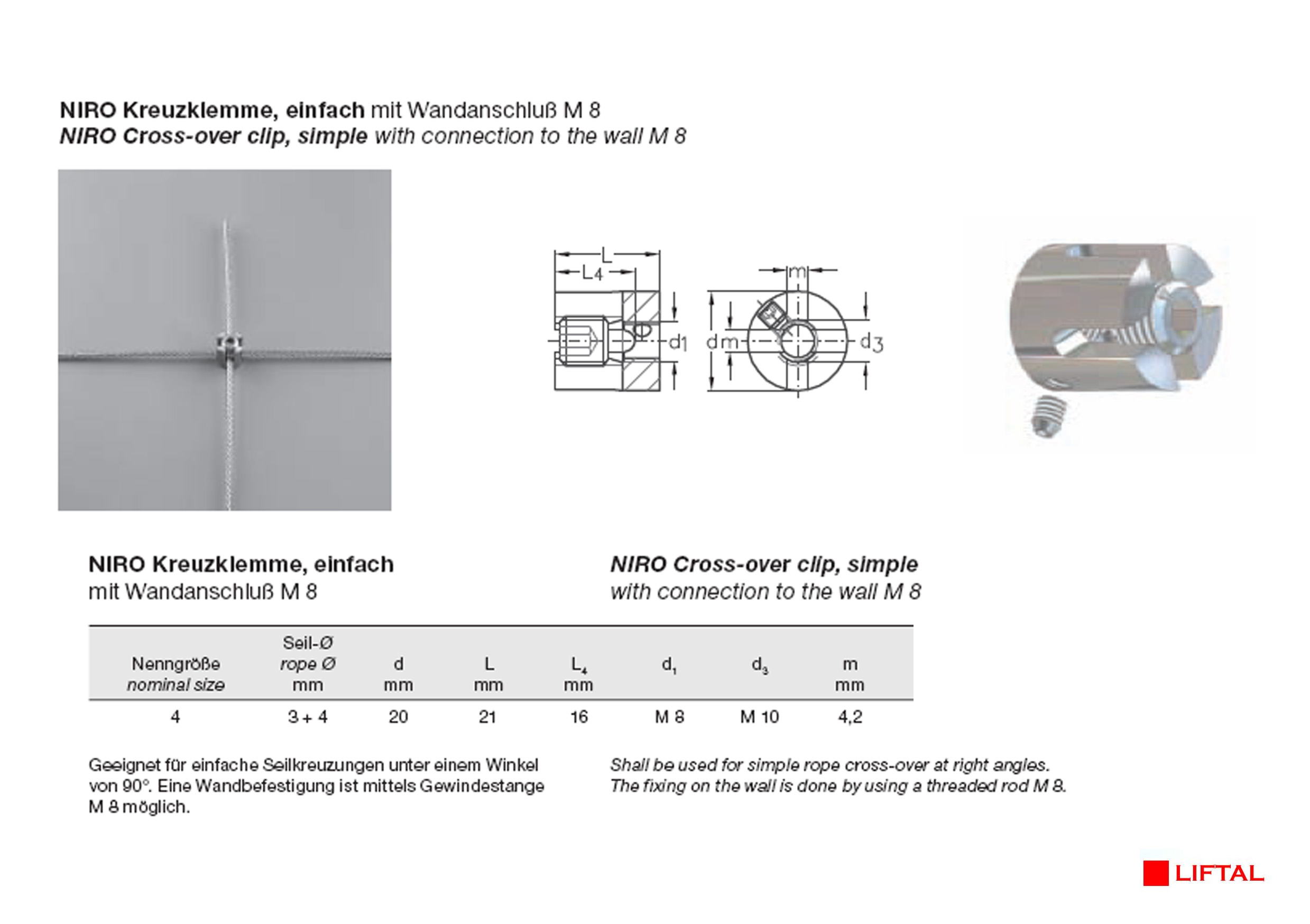 NIRO Cross-over clip, simple with connection to the wall