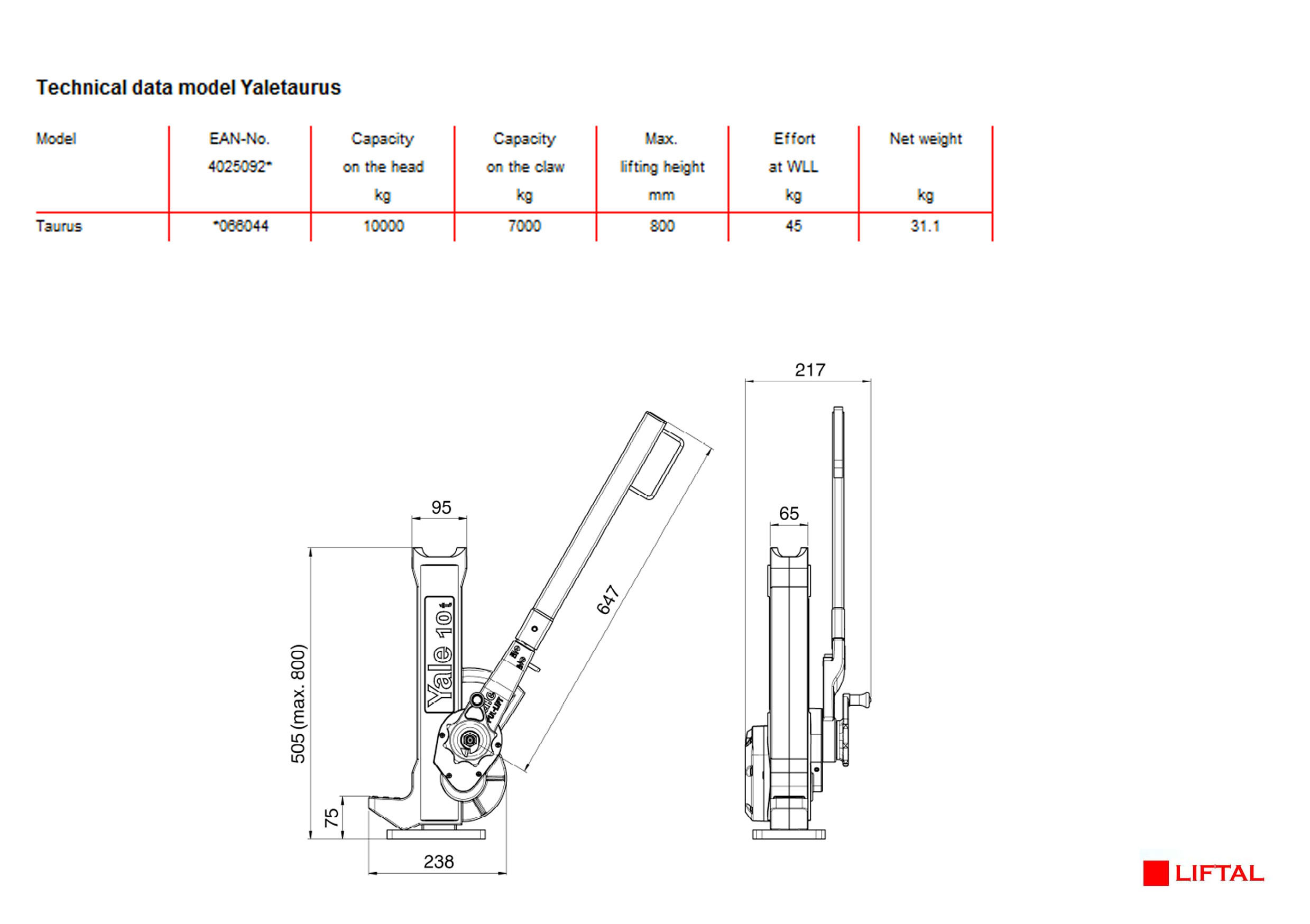 - Crank hand wheel for quick positioning of the ratchet jack, when not under load.