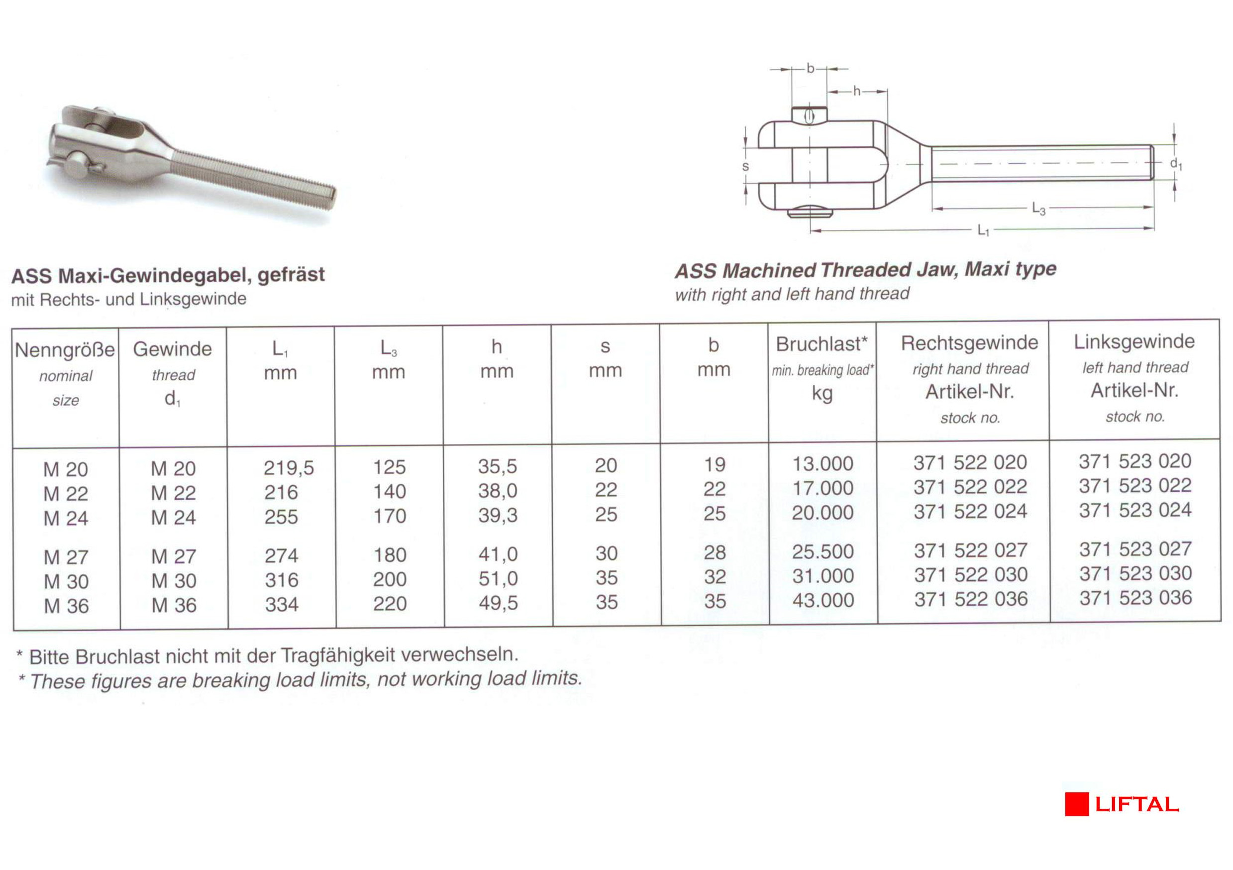 ASS Rigging Screw, Maxi type with jaw (machined) and terminalASS
