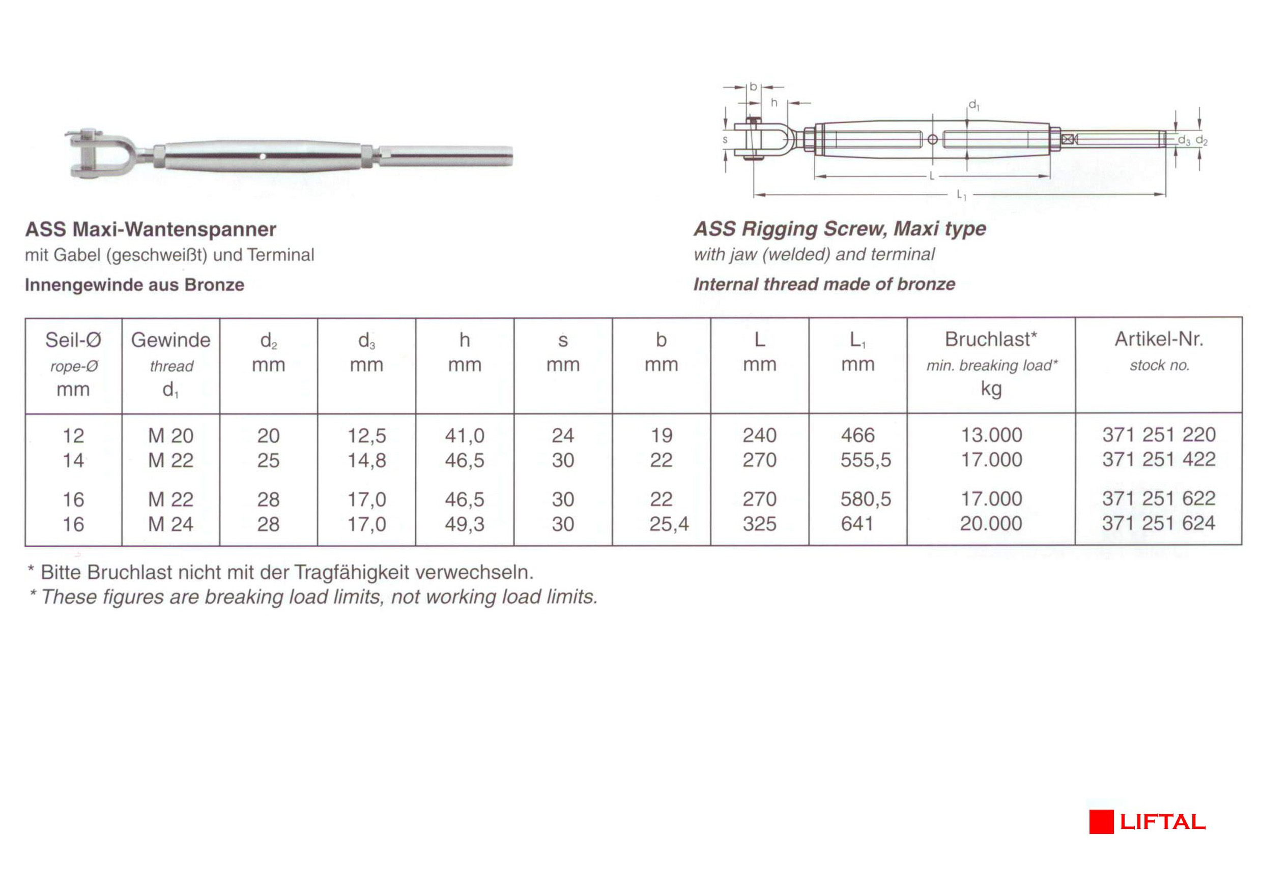 ASS Rigging Screw, Maxi type with jaw (machined) and terminalASS