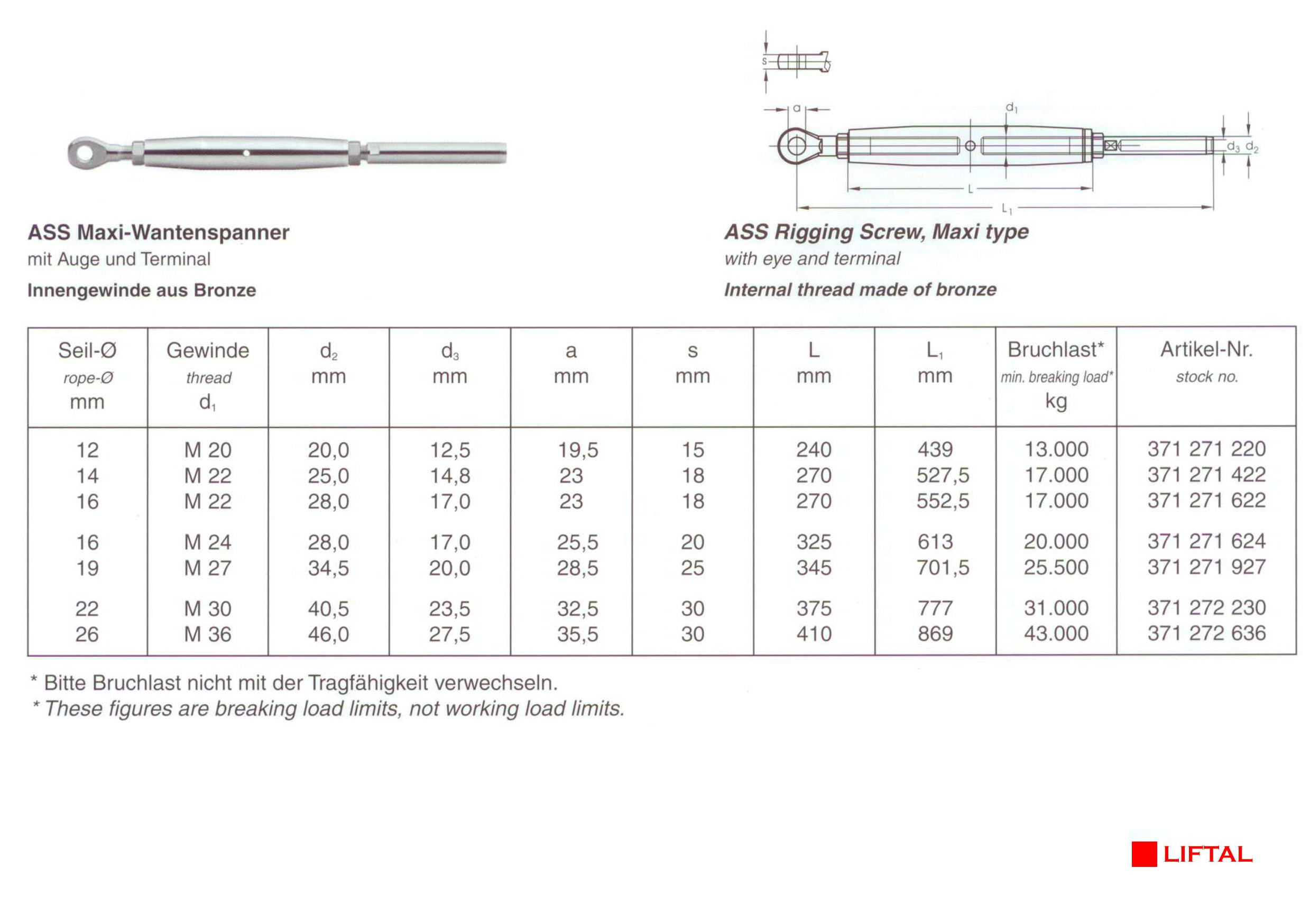 ASS Rigging Screw, Maxi type with eye and terminal