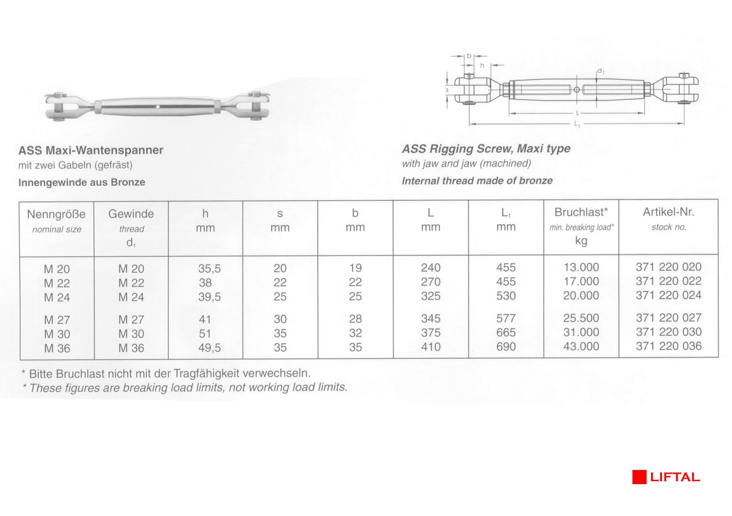 ASS Rigging Screw, Maxi type with jaw and jaw (machined)