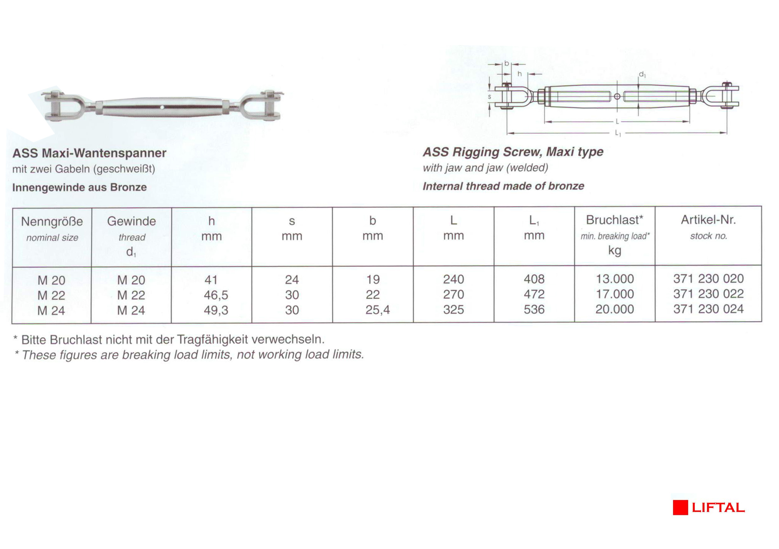 ASS Rigging Screw, Maxi type with jaw and jaw (welded)