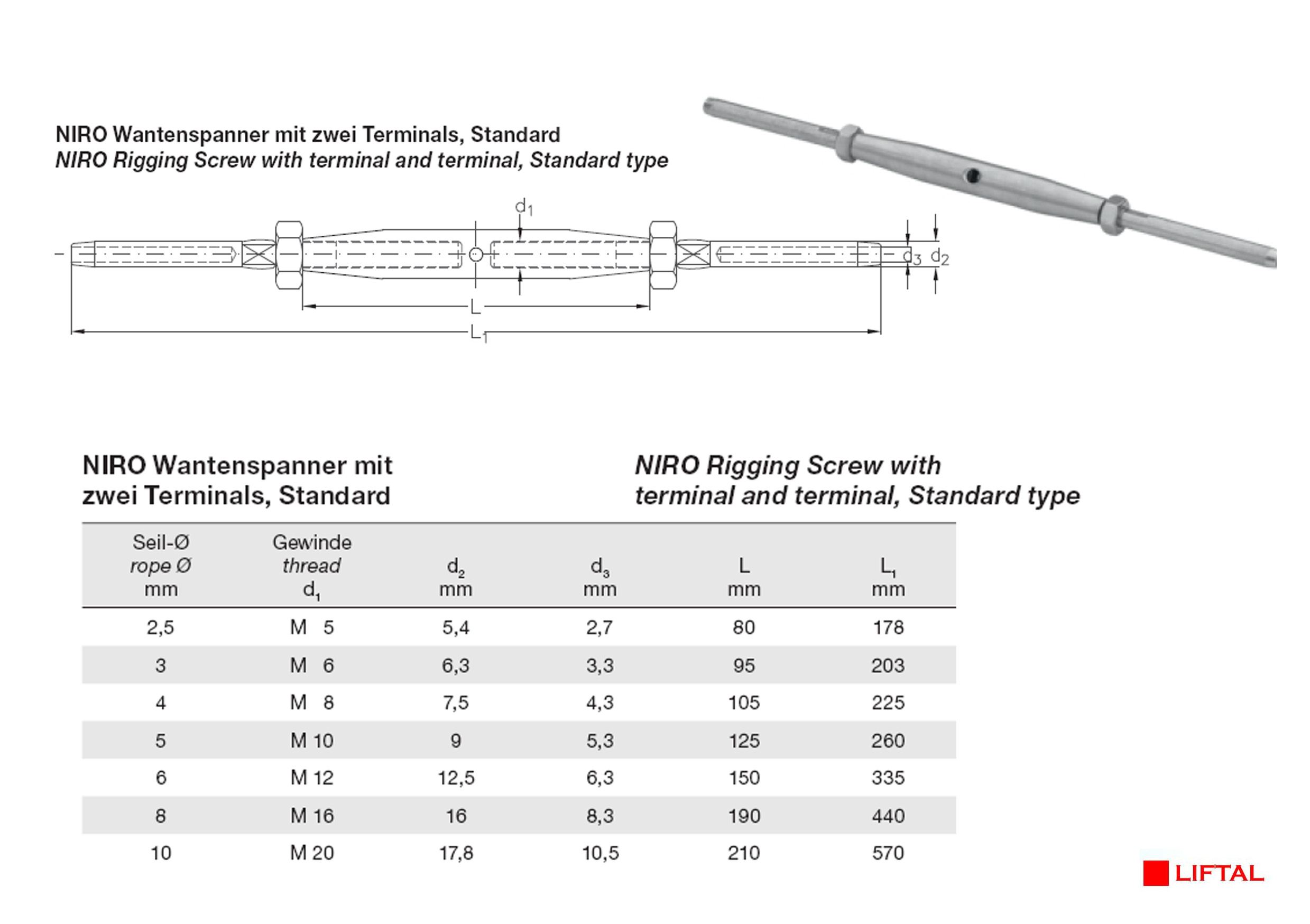 Niro Rigging Screw with terminal and terminal