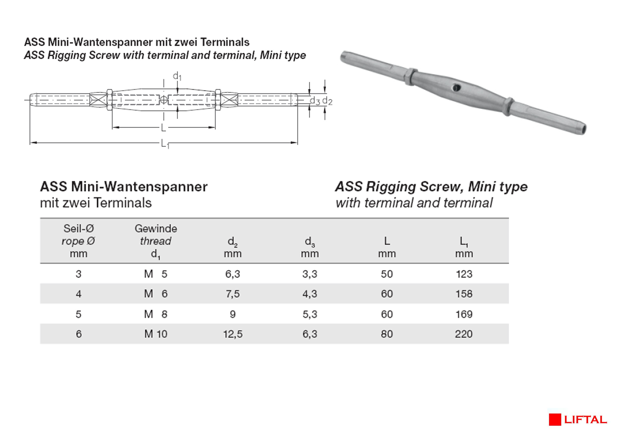 ASS Rigging Screw, Maxi type with jaw (machined) and terminalASS