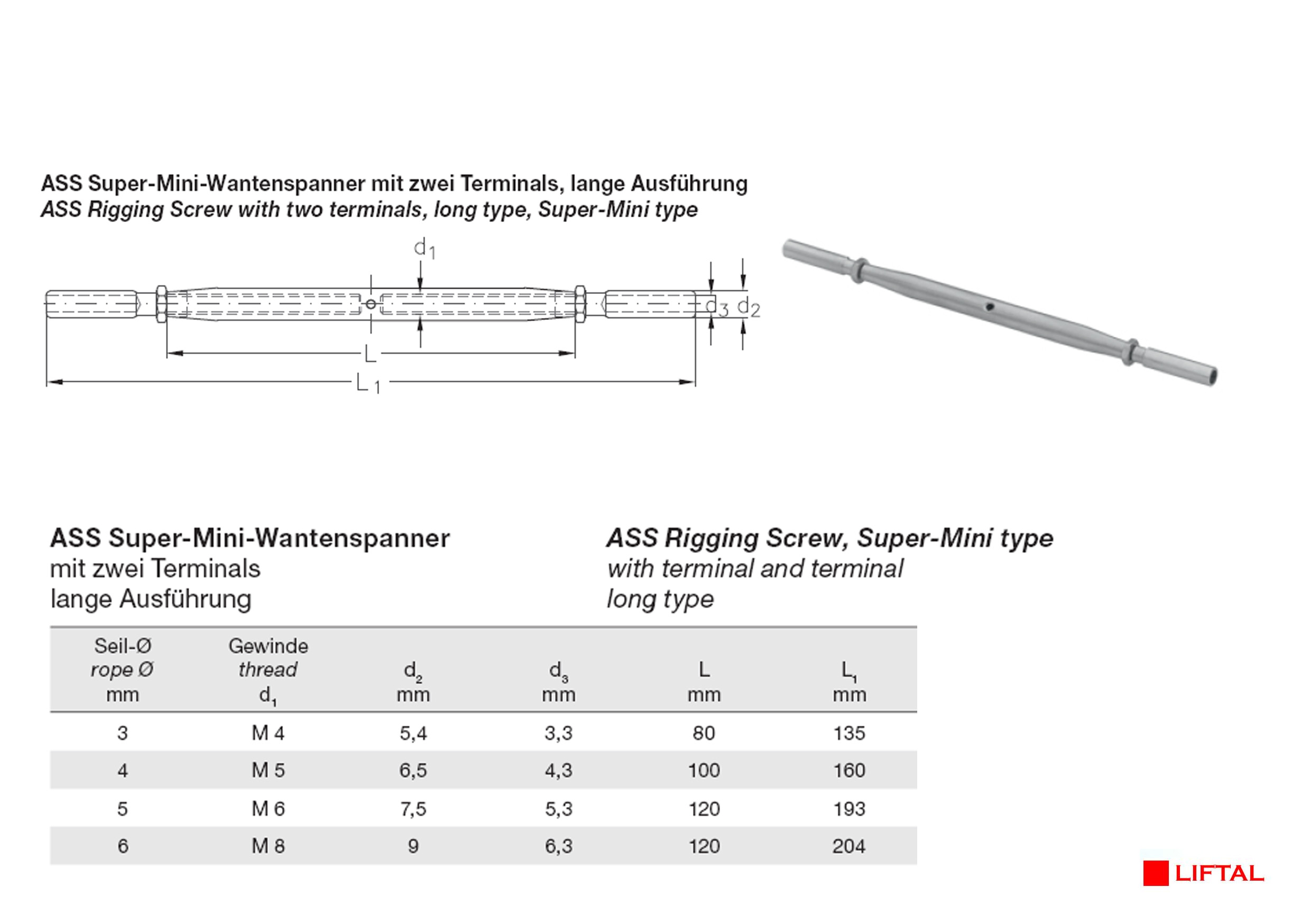 ASS Rigging Screw, Super-Mini type with terminal and terminal, long type