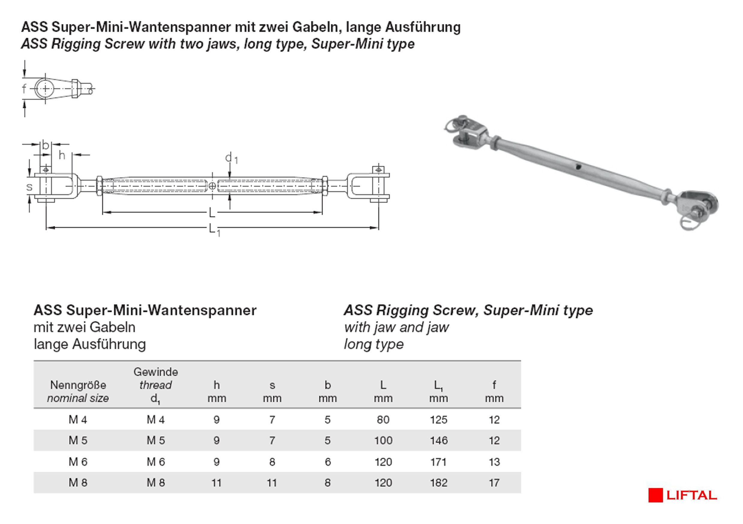 ASS rigging screw, super-mini type with jaw and jaw, long type