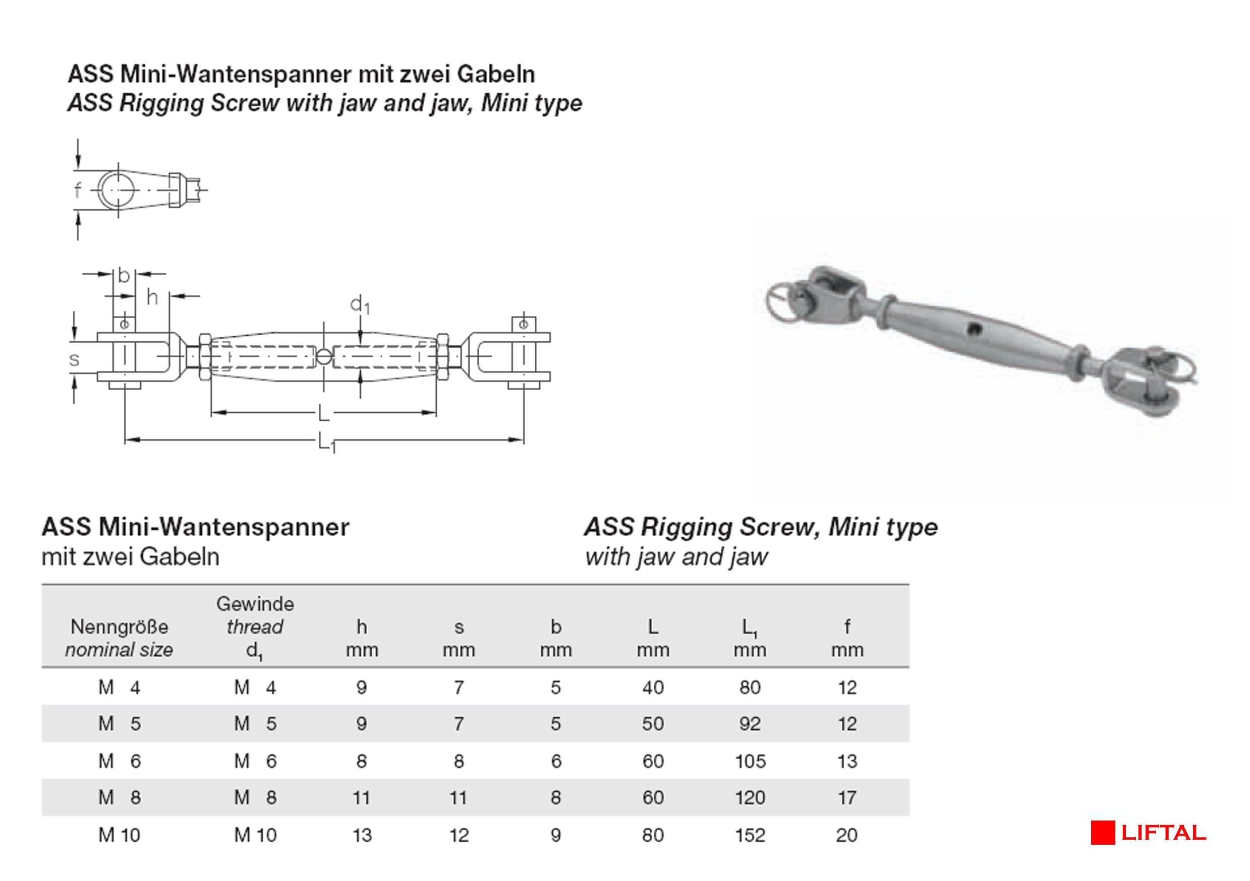 ASS Rigging Screw, Maxi type with jaw (machined) and terminal