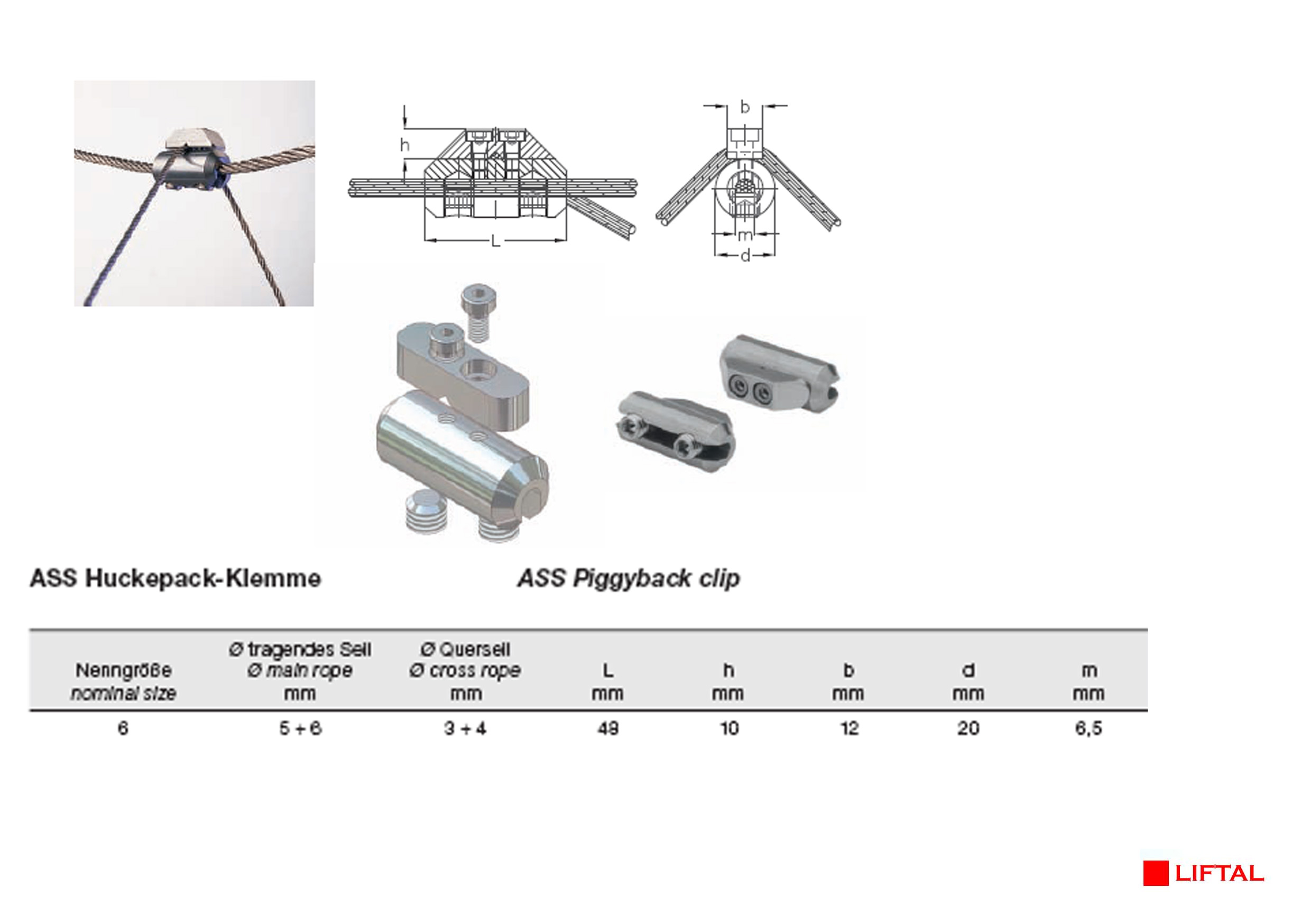 The ASS piggyback clip is meant for the stabilization of the rope. The rope will be tensioned at the point of intersection without sharp-edged bend in three-dimensional direction.