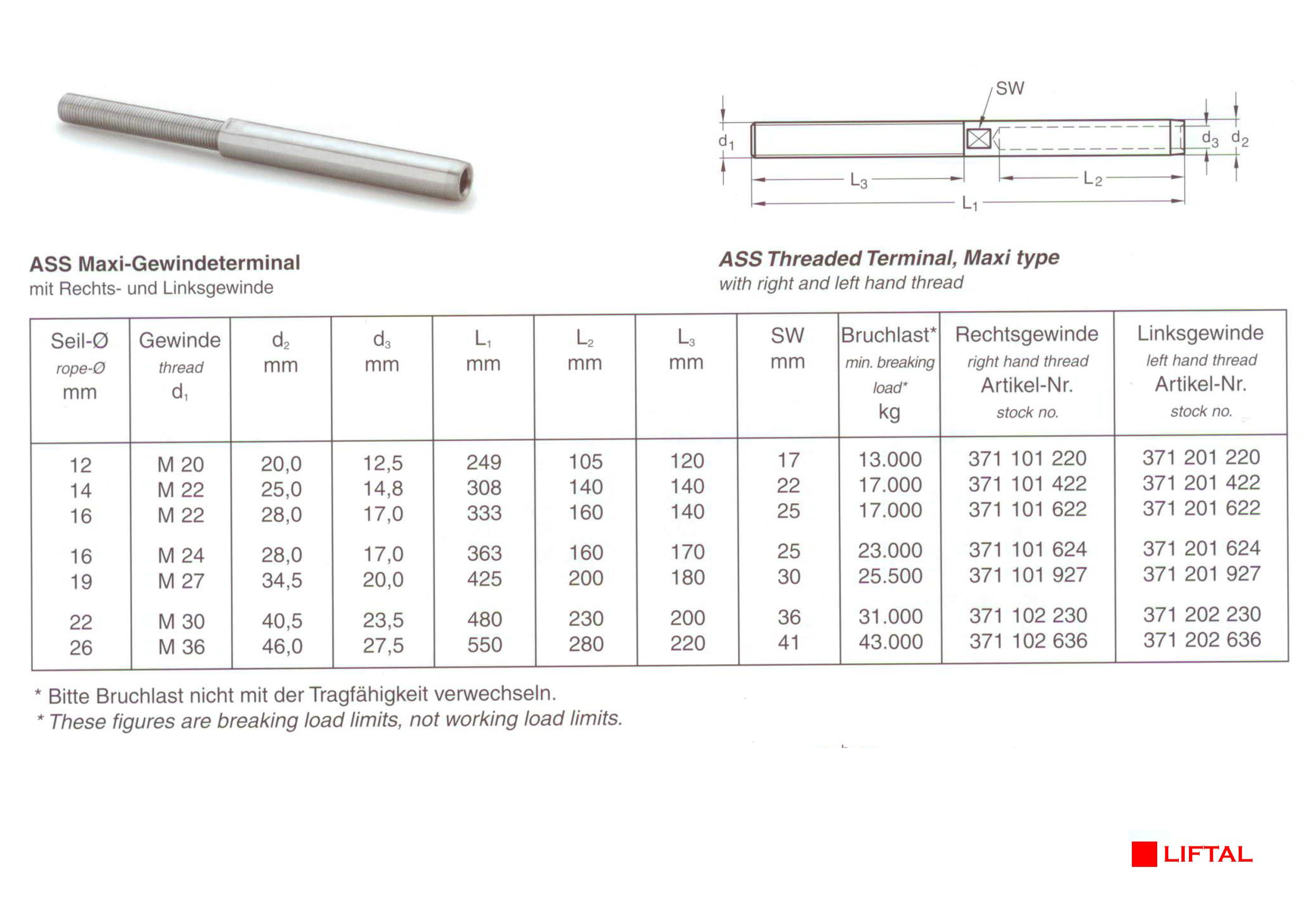 ASS Threaded terminal type KW, Mini type with extra long threadASS -