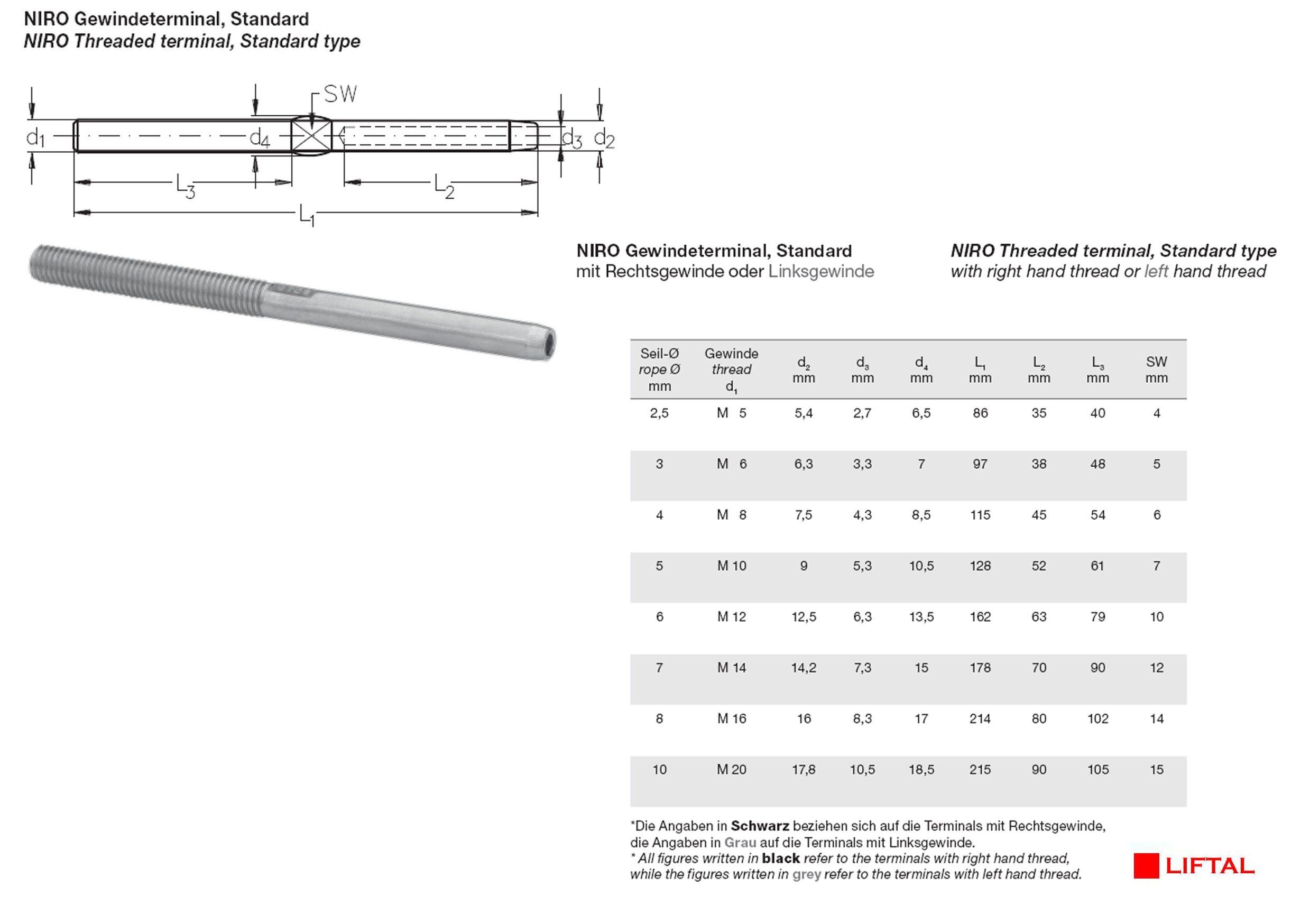 ASS Threaded terminal type KW, Mini type with extra long threadASS -