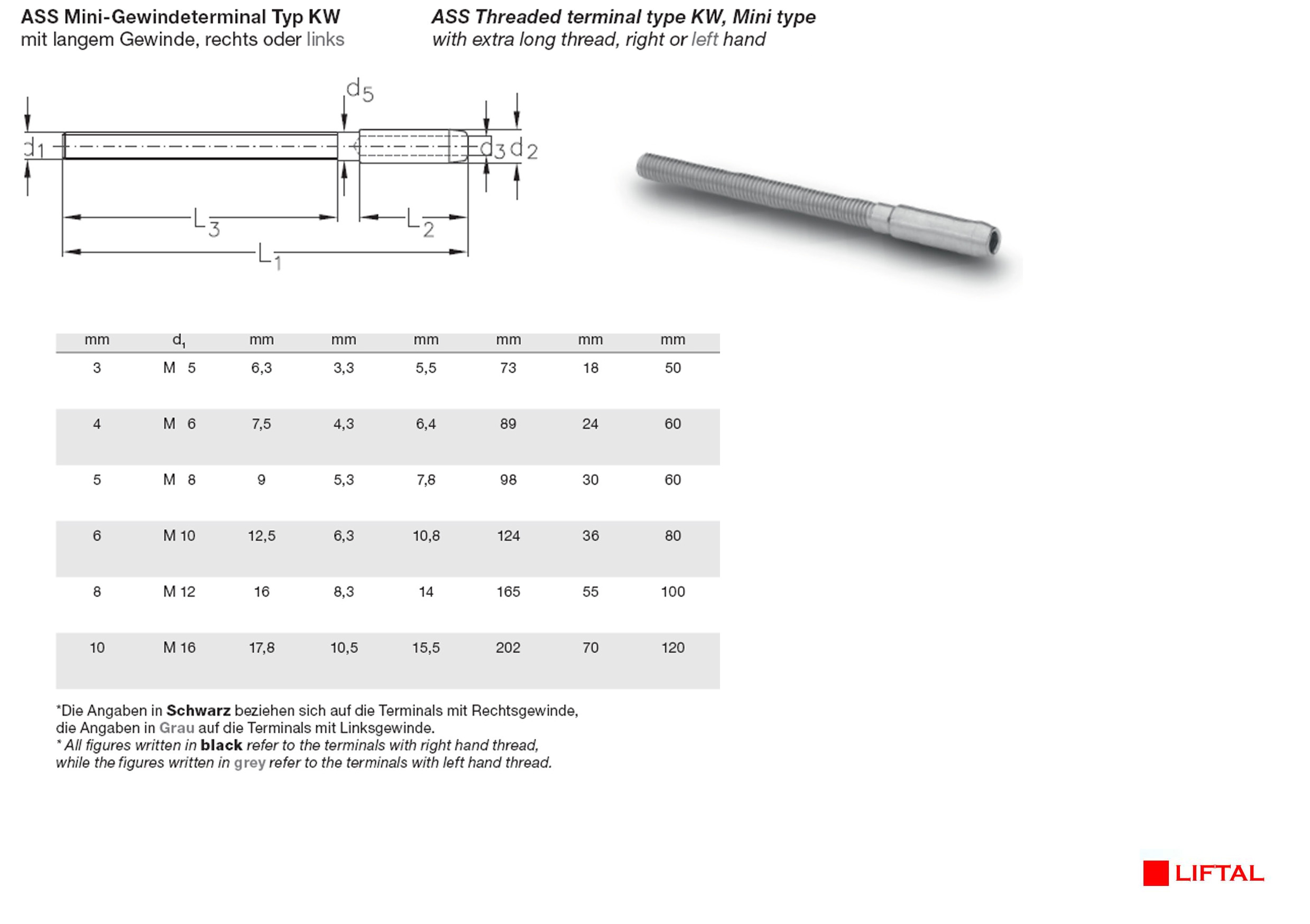ASS Threaded terminal type KW, Mini type with extra long thread