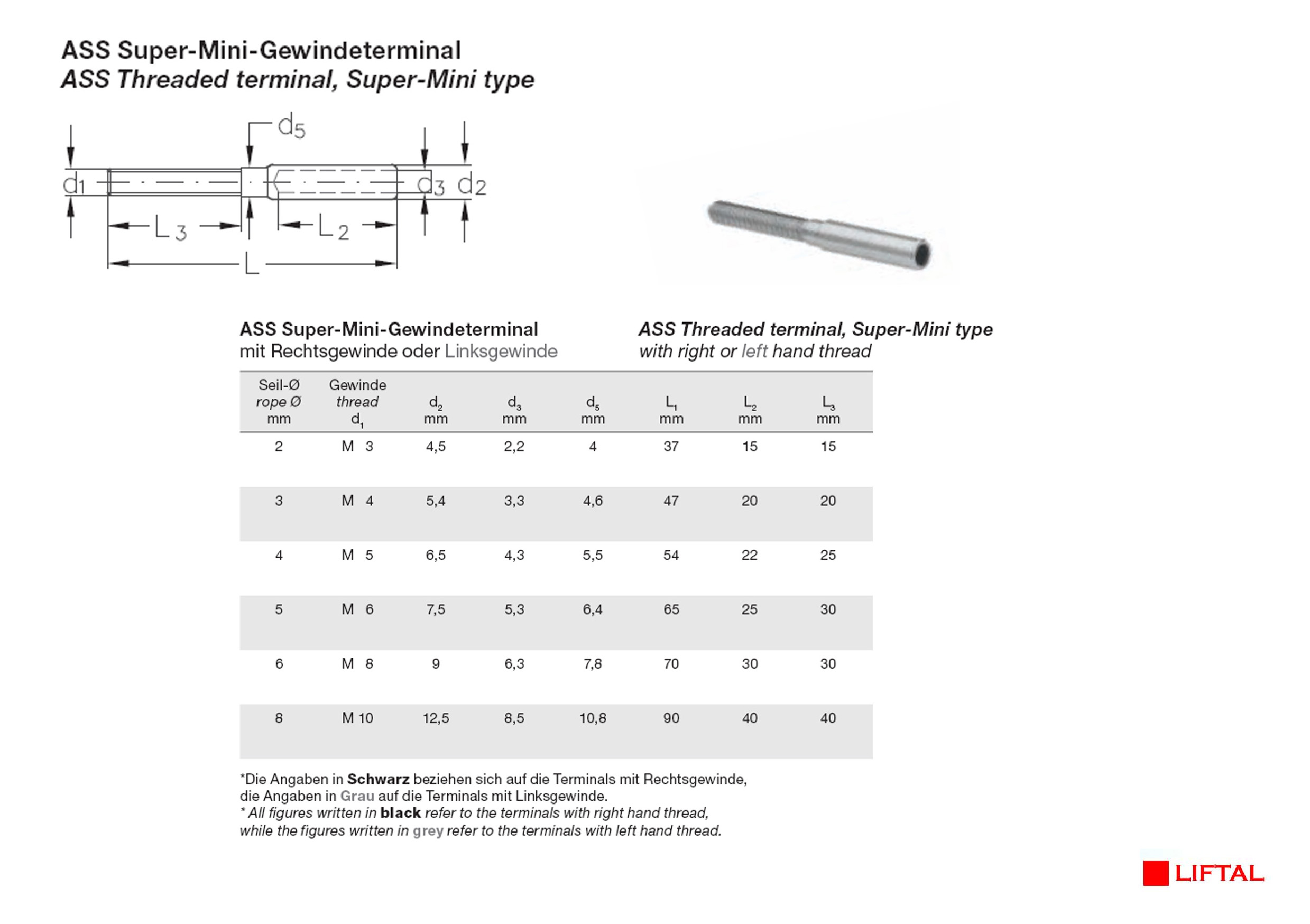 ASS Threaded terminal type KW, Mini type with extra long threadASS -