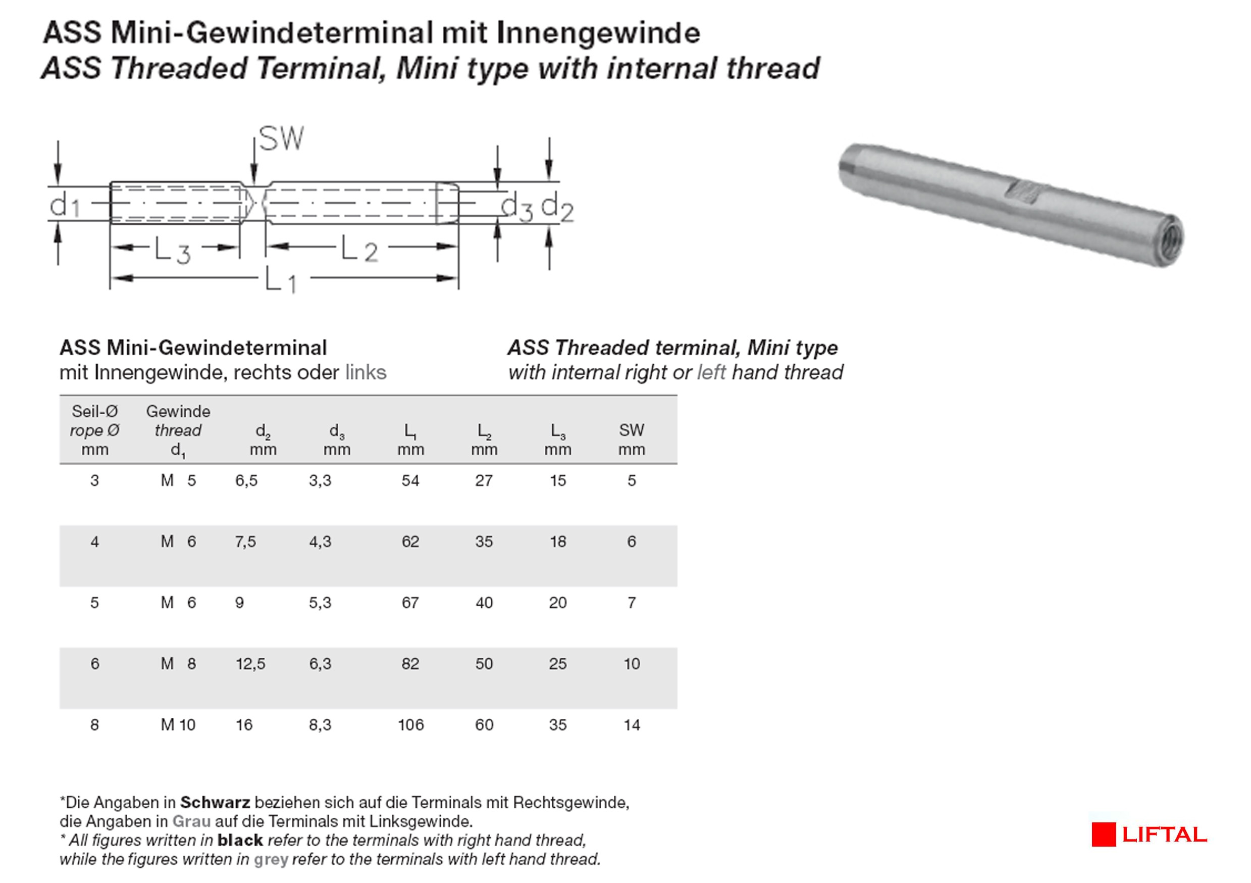 ASS Threaded terminal type KW, Mini type with extra long threadASS -