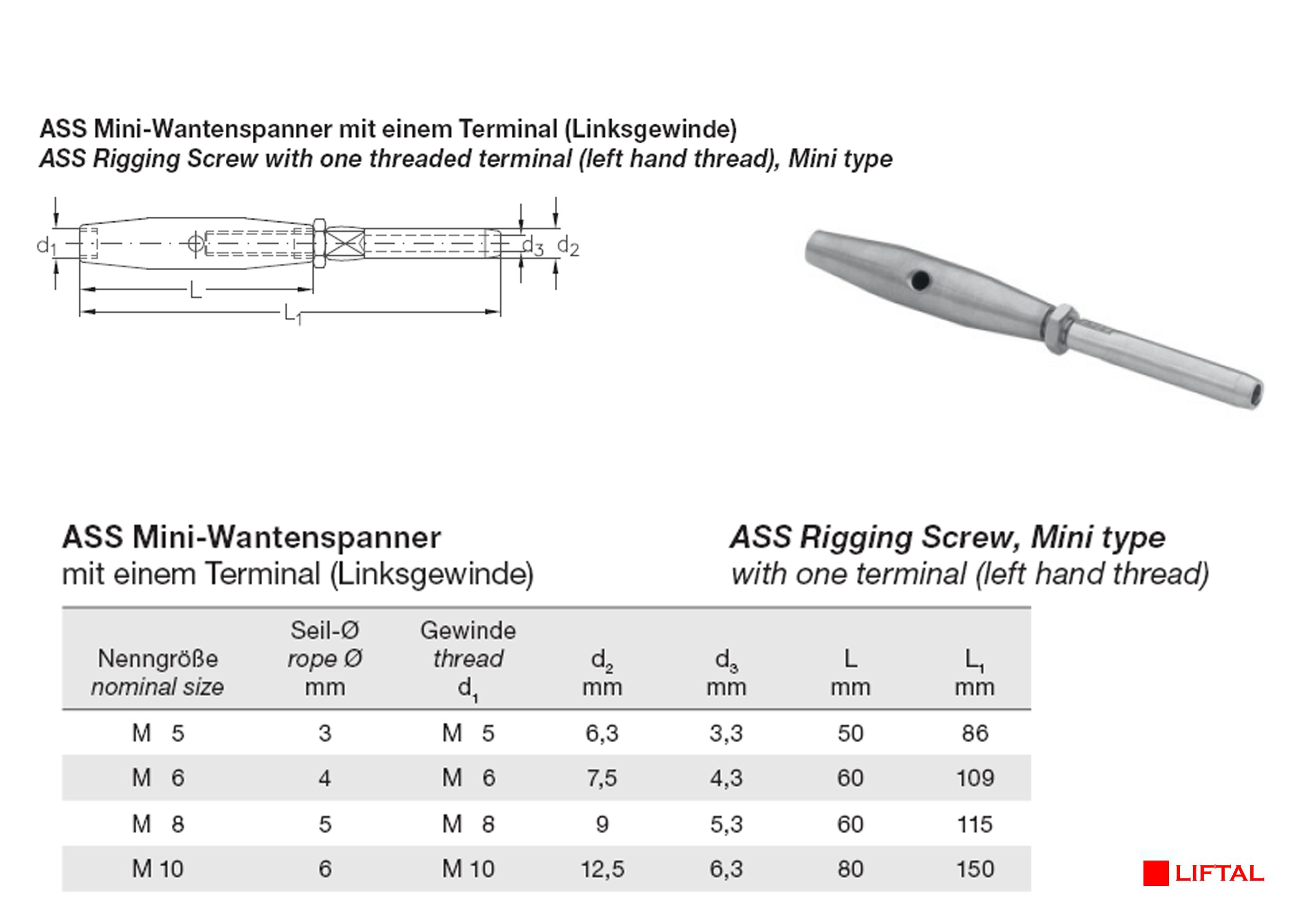 ASS Rigging Screw, Mini type with one terminal (left hand thread)